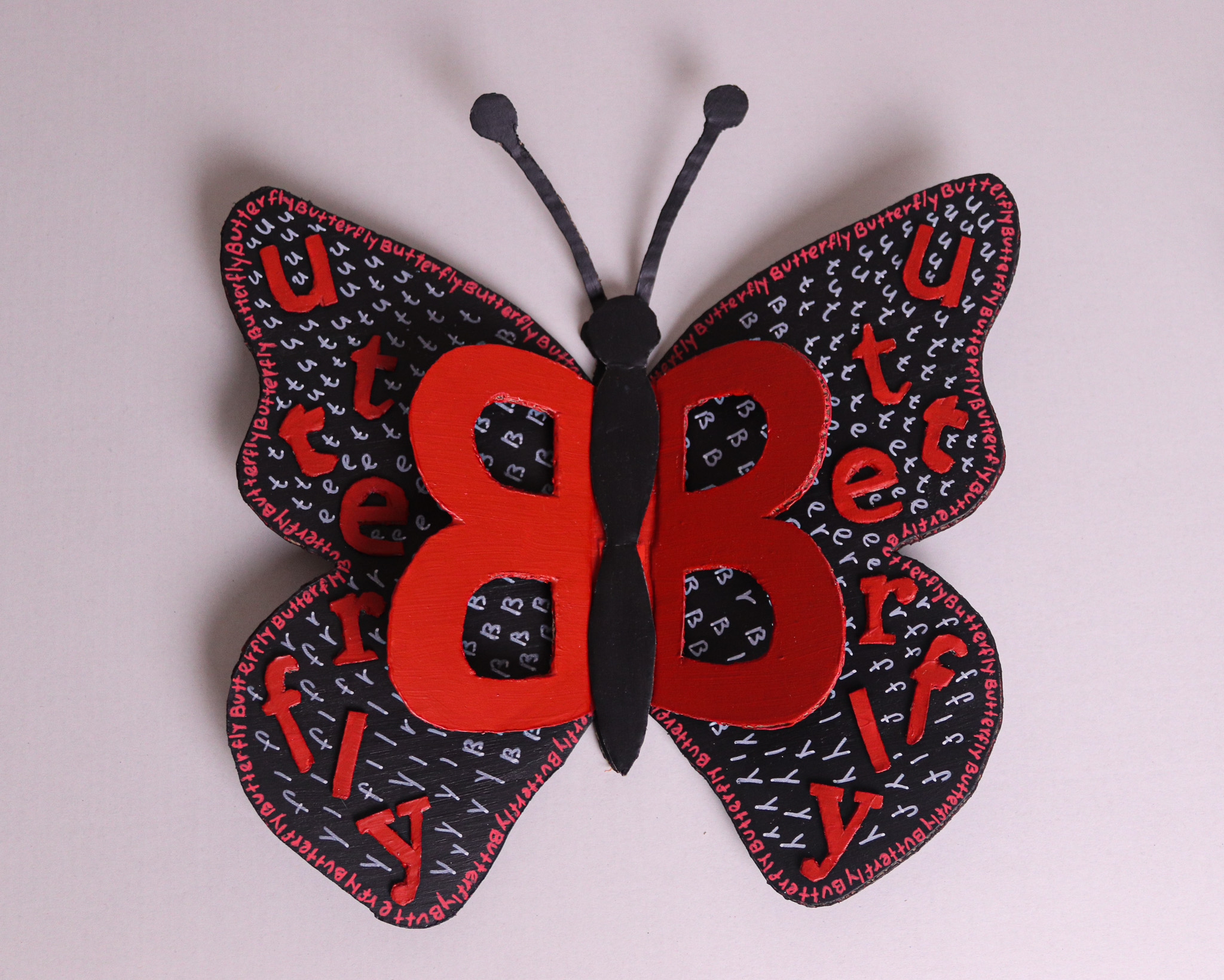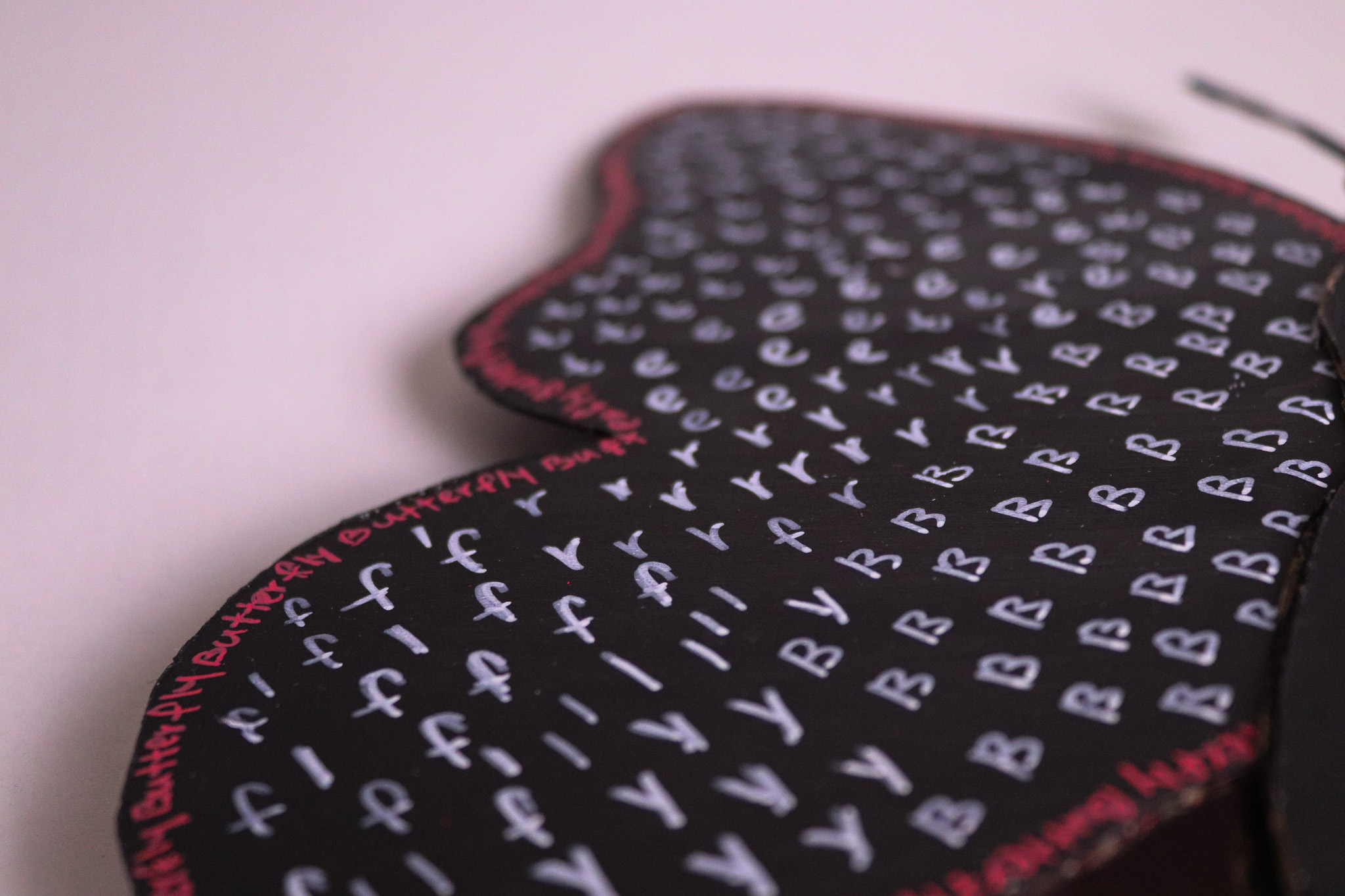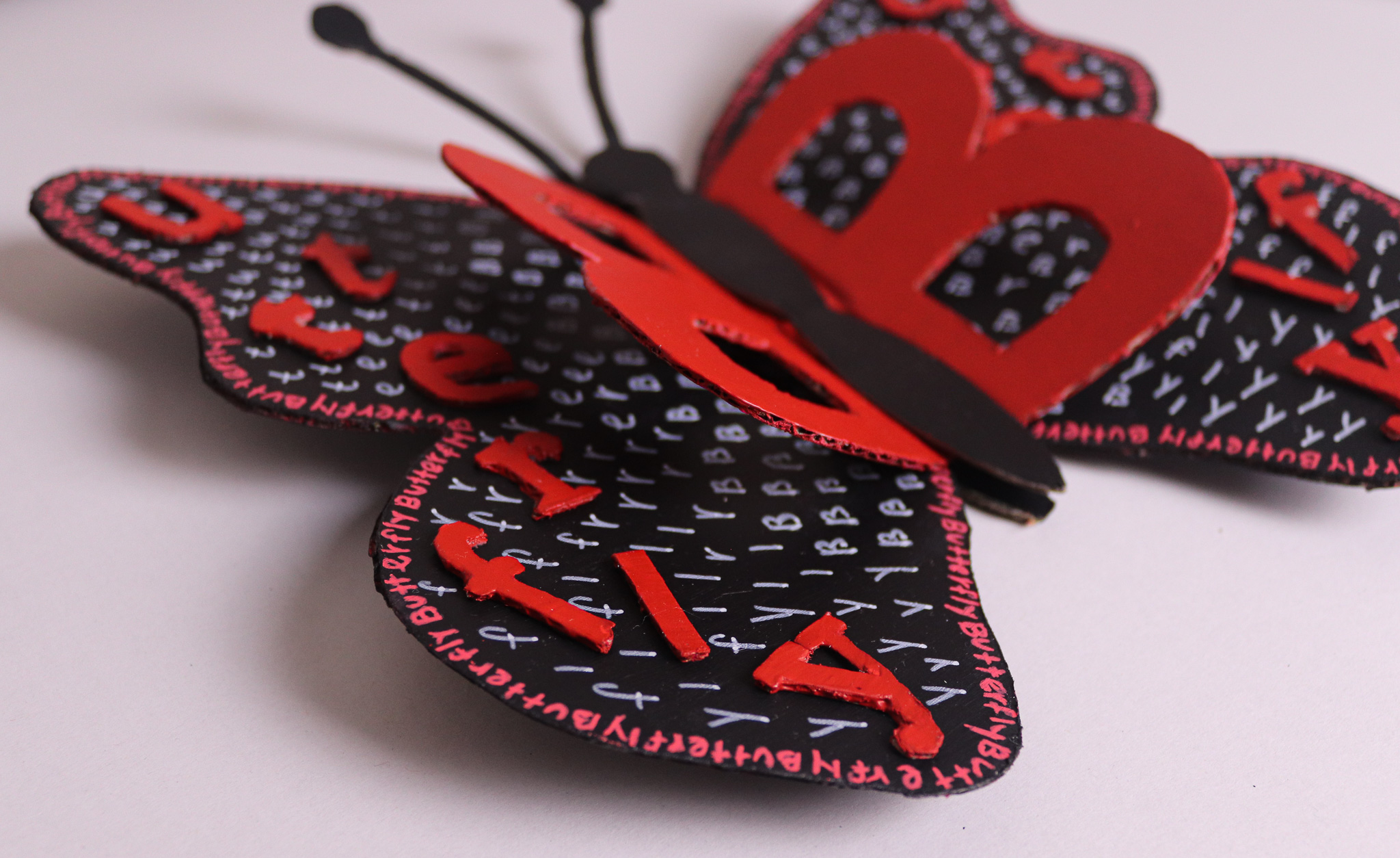 Butterfly stylized with letters. Rhythm, color, texture. Handmade from cardboard. Category: BASE CATEGORY | DO NOT DELETE Handmade Installations Date: 03.10.2025 Share: