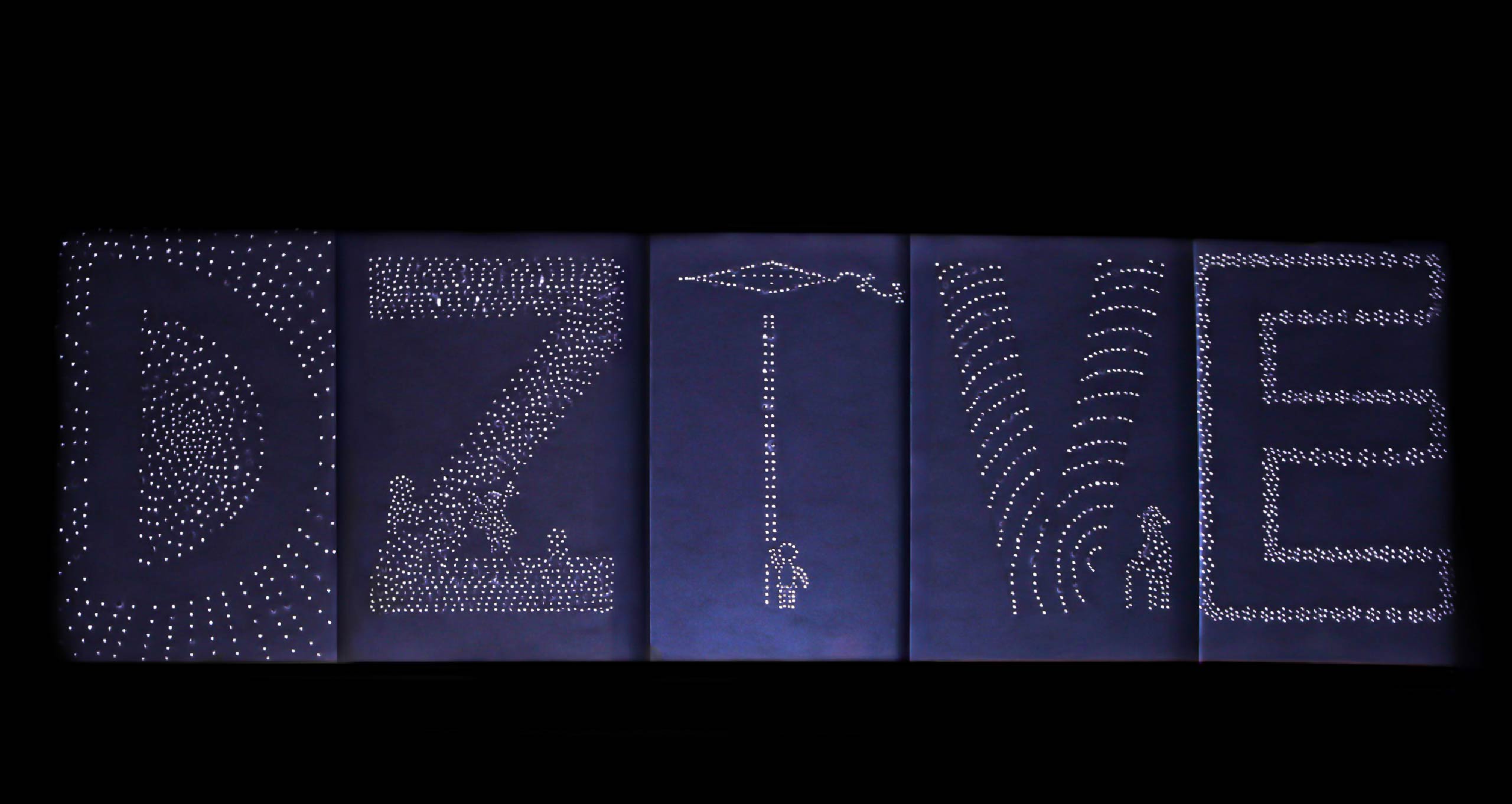 To enhance the tactile effect and depth of the work, I illuminated the letters with light.