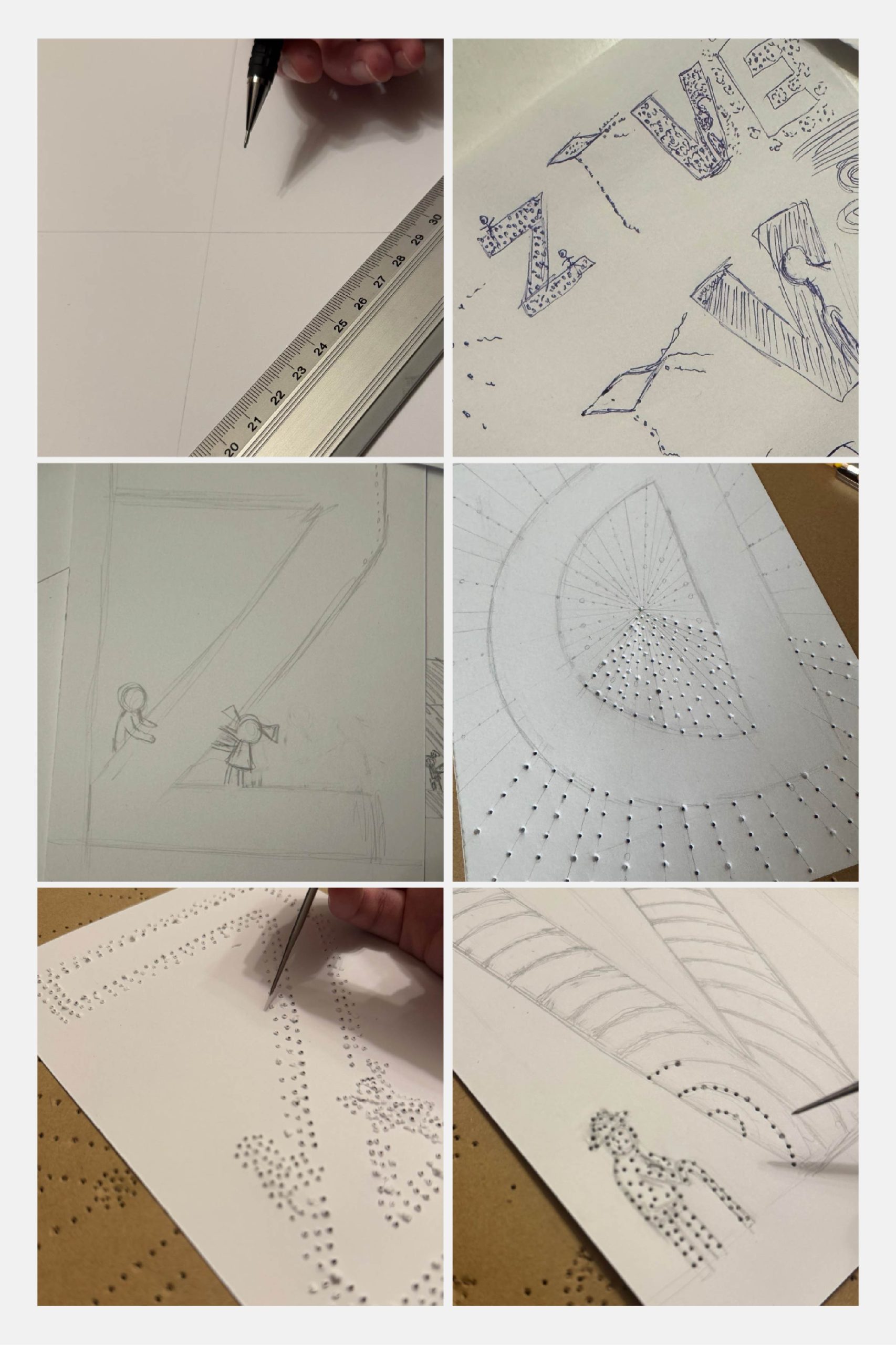 Each letter represents a different stage of life and is interpreted through form and texture.
