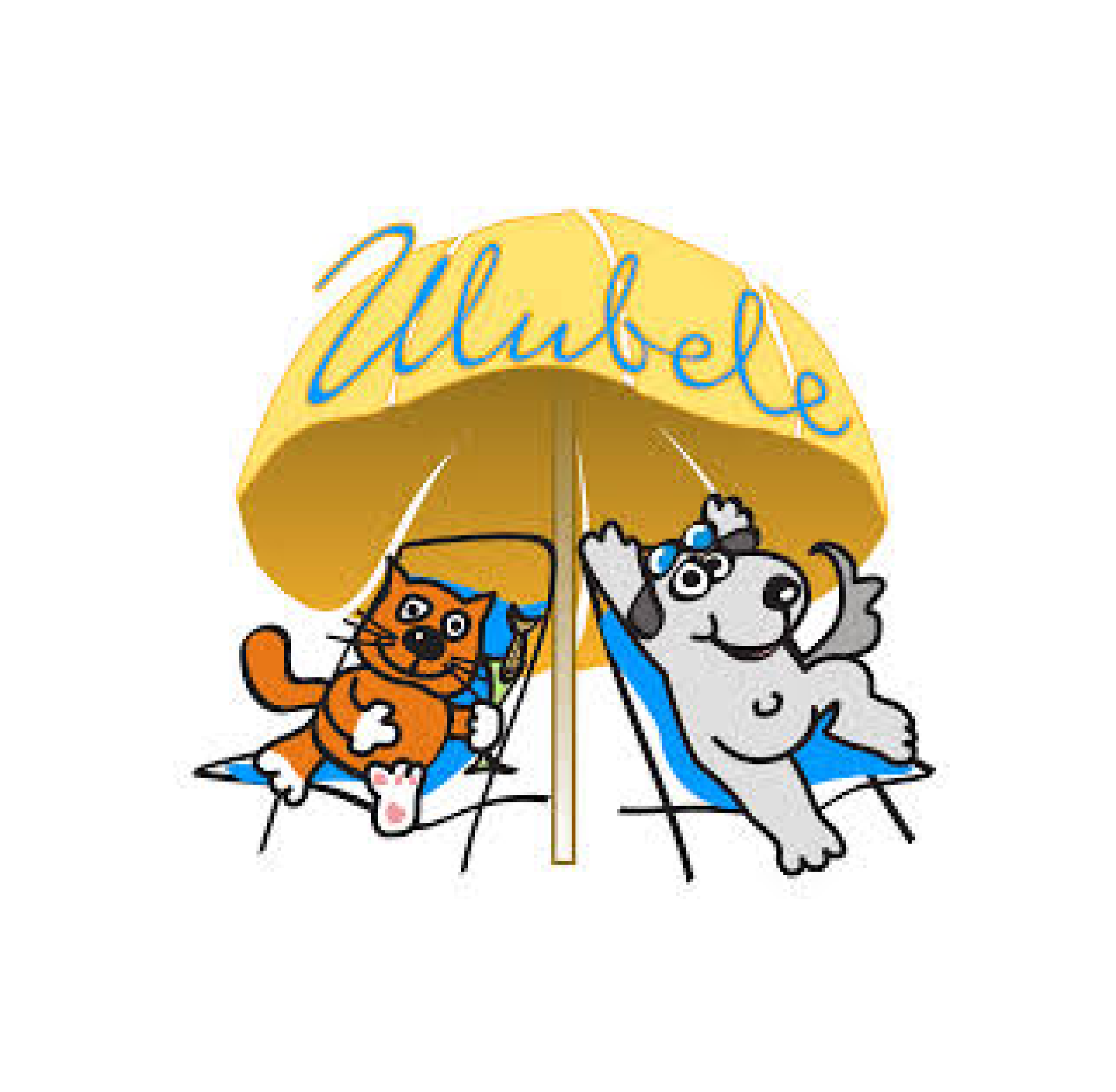 The original design features Ulla and Belle — a dog and a cat protected by an umbrella, a symbol of care and safety.